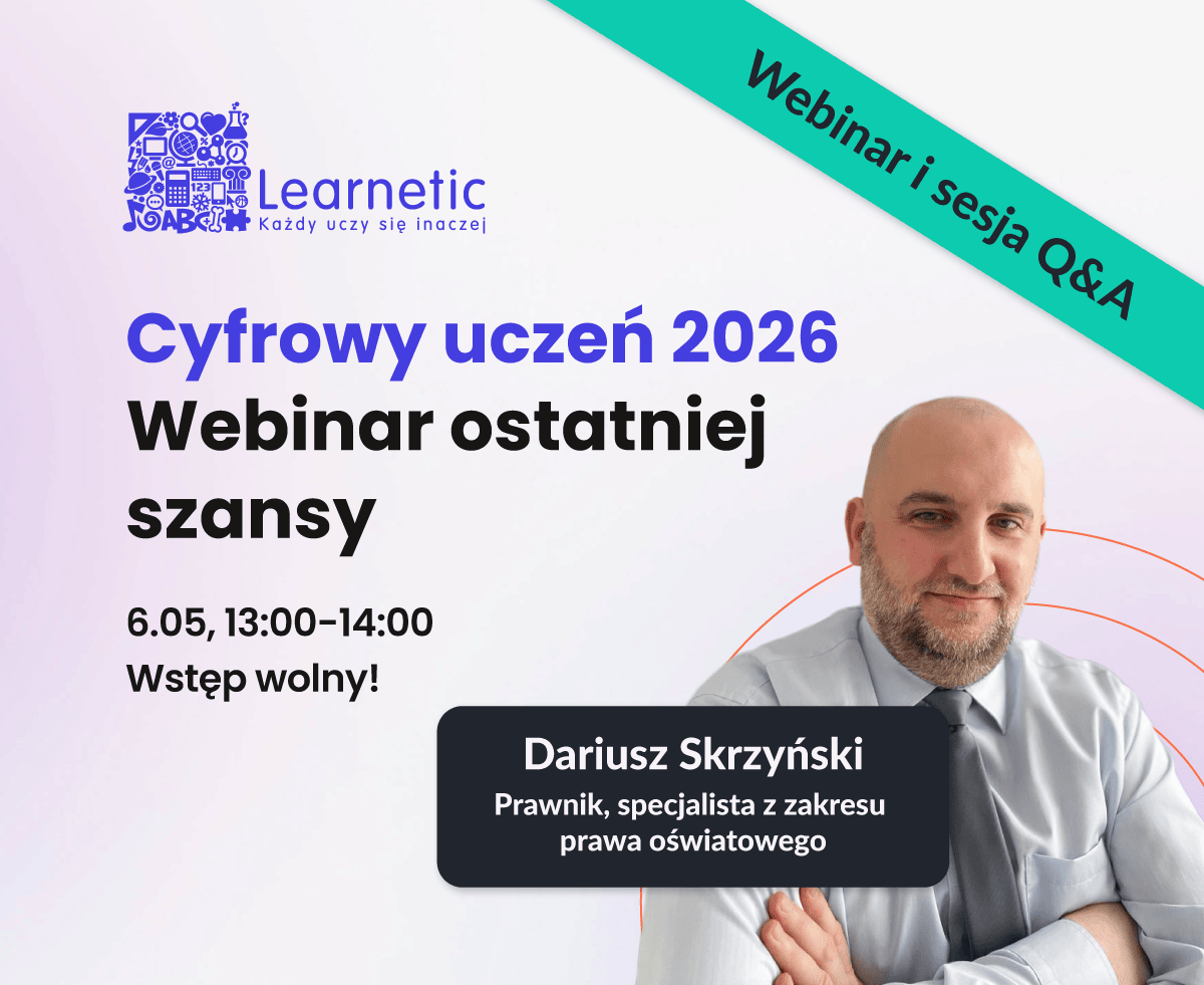 Weź udział w webinarze i dowiedz się, jak skorzystać z dofinansowania Cyfrowy Uczeń 2026. Zdobądź środki na cyfrową transformację swojej szkoły lub placówki!